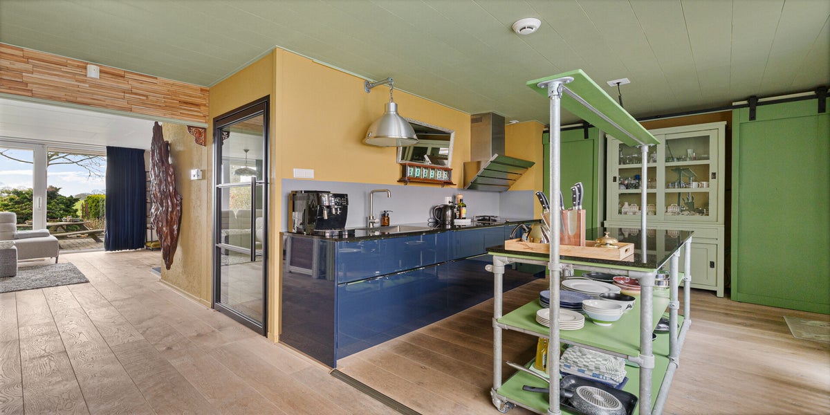 Zijentree met hal en toilet. Vanuit de hal bereik je de ruime woonkamer (ca. 29 m²) met veel lichtinval en uitzicht over de landerijen. Aansluitend de eetkamer met open keuken.